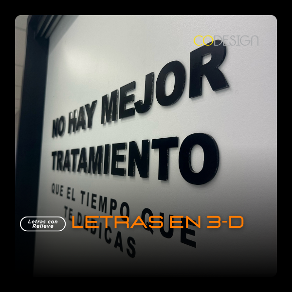 En Codesign damos vida a tu marca con Letras en Relieve en Acrílico y Madera que destacan en cualquier espacio. Fabricamos en acrílico con gráfica adhesiva o en madera electropintada, logrando un acabado elegante, moderno y de gran durabilidad. Son la solución perfecta para recepciones, fachadas e interiores corporativos.